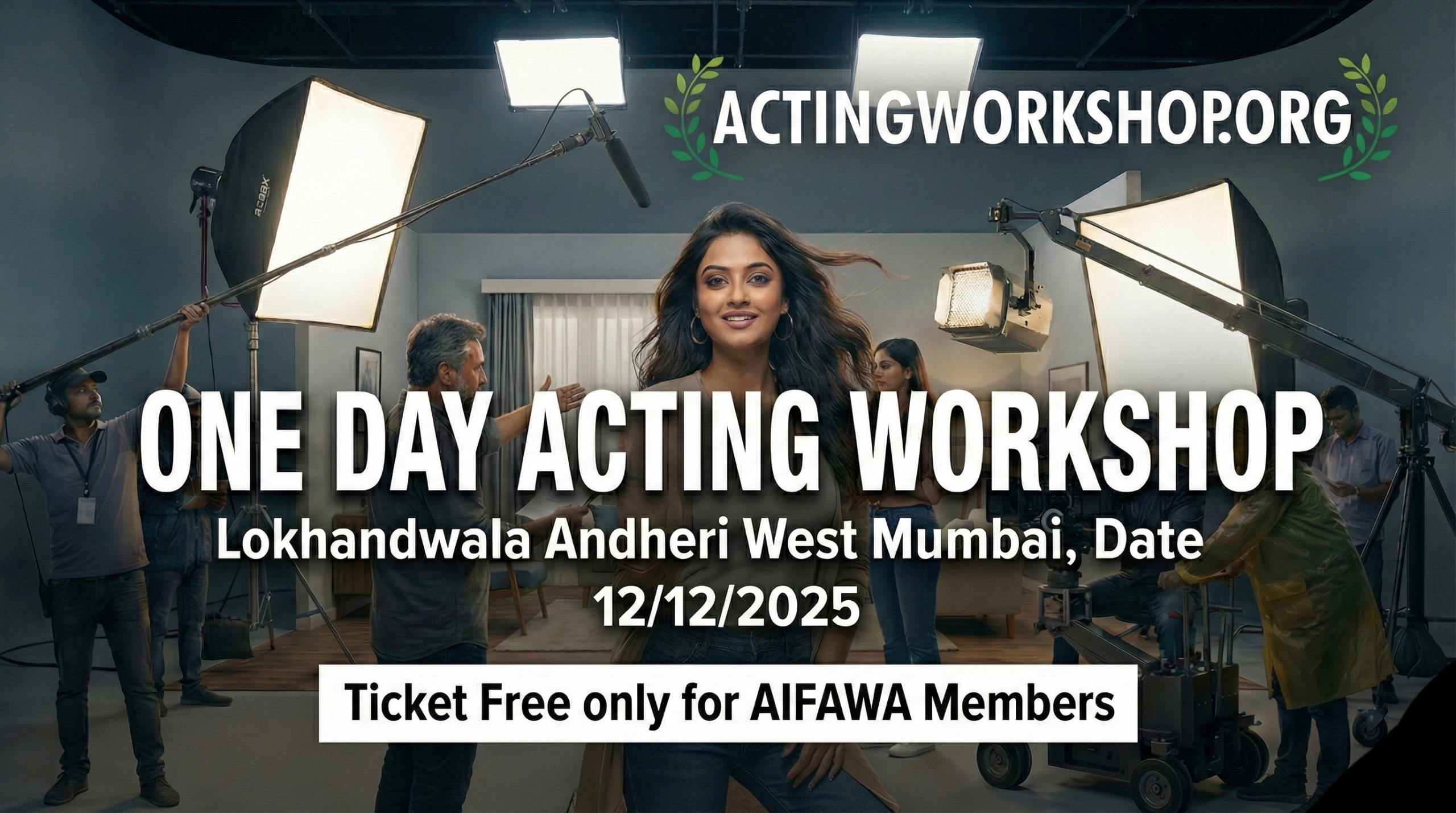 ACTING WORKSHOP .ORG is hosting a  in Lokhandwala, Andheri West, Mumbai on 12 December 2025. This exclusive workshop is designed for aspiring actors who want to improve their performance skills, camera presence, improvisation ability, dialogue delivery, and on-spot acting confidence. Participants will receive practical training, live guidance from industry professionals, and hands-on camera test exercises to enhance their on-screen performance.
